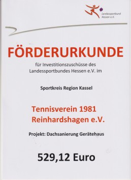 Am 12.11.25 hatte der Landrat Siebert u.a. den Vorsitzenden des Tennisvereins zur Übergabe der Bescheide für Fördermittel nach Immenhausen eingeladen. Für unsere Projekte „Reparatur Zaun“ und „Dachsanierung Gerätehaus“ erhielten wir 386,00 Euro.