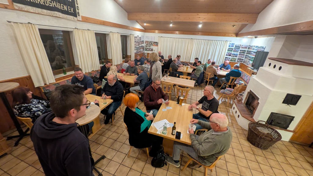 Nach der ersten Runde führte Roland Lotze (Reinhardshagen) mit 41 Punkten vor Jörg Dröge (Simmershausen, 39 Punkte) und Gerad Hönig(Hombressen) mit 28 Punkten. An den 6 Vierertischen und einem Fünfertisch begannen die 29 Teilnehmer danach die entscheidende 2. Runde wieder mit 20 bzw. 25 Spielen. Nach 4 ½ Stunden wurde abgerechnet und dann konnte Jan Ciupa am Laptop die Sieger ermitteln.