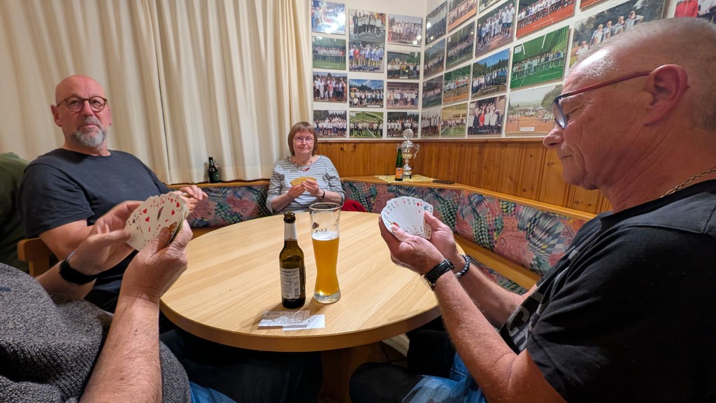 Nach der ersten Runde führte Werner Fenner mit 51 Punkten vor Angelika Bucher und Jörg Dröge mit jeweils 44 Punkten. An den 5 Vierertischen und einem Fünfertisch begannen die 25 Teilnehmer danach die entscheidende 2. Runde wieder mit 24 bzw. 30 Spielen. Nach 4 ½ Stunden wurde abgerechnet und dann konnte Jan Ciupa am Laptop die Sieger ermitteln.