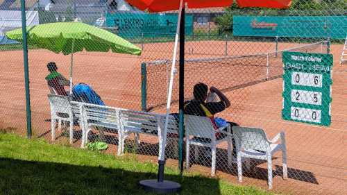 Am 27.06. begann der Wettkampf bei auch diesmal schweißtreibenden Temperaturen. Das 1. Einzel gewann TVR mit 6:1/6:2. Im 2. Einzel hatte es Marco Heinemann schwer, konnte aber den Match-Tiebreak nicht gewinnen (6:3/5:7/6:10).