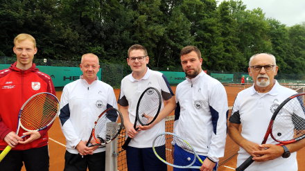 Am 14.06. bei schweißtreibenden Temperaturen begann der Wettkampf mit den Einzelm von Marco Heinemann (6:3/6:0) und Gerrit Hartig (6:0/6:2). Im folgenden ersten Doppel hatten Marco Heinemann/Sascha Rehbein nach einem sicheren ersten Satz keine Chance im Zweiten und mussten in den Tiebreak (6:1/2:6/1:0), mit dem sie den 3. Punkt für unser Team holten. Im zweiten Doppel spielten Nico Schüler/Julius Weddig ein knappes Match mit 4:6/4:6.