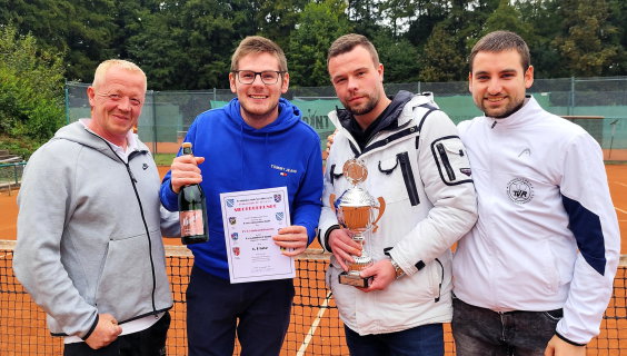 Mit dem Einzel von Ernst wurde beim Stand von 5:7/4:1 begonnen. Ernst Schrader hat die Unterbrechung nicht gut getan und er verlor den zweiten Satz 4:6. So mussten die zwei Doppel gewonnen werden, um den Pokal in diesem Jahr nach Reinhardshagen zu holen.Das erste Doppel Julius Weddig/Sascha Rehbein spielte gut auf, gewann den ersten Satz, konnte den zweiten Satz nicht mithalten und es musste der Match-Tiebreak entscheiden. Schnell stand es 8:1 für den Gegner und der Sieg schien aussichtslos. Doch der Jubel war groß, es stand nach großer Konzentration 9:9 und unsere Jungs holten die zwei Punkte zum Sieg (6:3/3:6/11:9). Den zweiten Schritt in die richtige Richtung machten Marco Heinemann/Gerrit Hartig mit dem unerwartetem und durch konzentriertes Spiel erreichten 6:3/6:3.