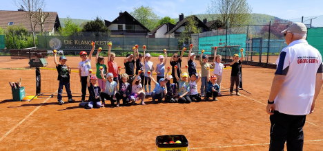 Eine große Begeisterung war bei allen Kindern zu erkennen und sie erhielten am Ende jeder eine Medaille aus den Händen des Trainers. Am 29.04. gab es für jedes Kind auch einen Tennisball als Erinnerung.