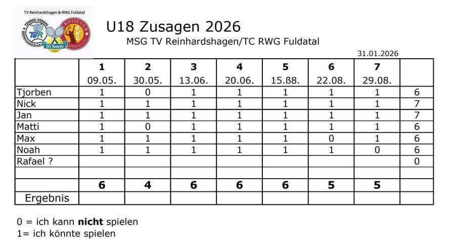 Wir haben es in den letzten Tagen geschafft, denn eine Mannschaftsspielgemeinschaft (MSG) mit dem TC Rot-Weiß-Gelb Fuldatal für die Mannschaft Junioren U18 wird in der neuen Saison spielen.