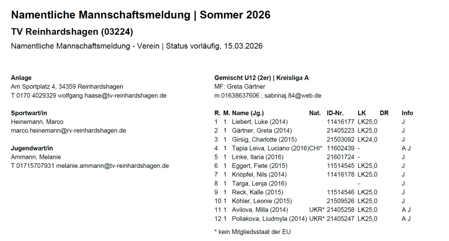 Am 24.01.26 waren die Eltern und Kinder der U12- und U18-Mannschaft eingeladen, um die Meldungen zu beraten und über den Modus zu sprechen. In einer sehr gut besuchten Veranstaltung kam es zur finalen Entscheidung für beide Mannschaften.