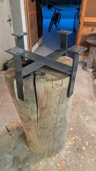 17.07.25: Eine schwierige Aufgabe hat Jan Ciupa vollbracht, denn die Untergestelle für die Pfeiler des Schildes sin aufgebracht und nun können die Fundamente aus Beton gegossen werden.