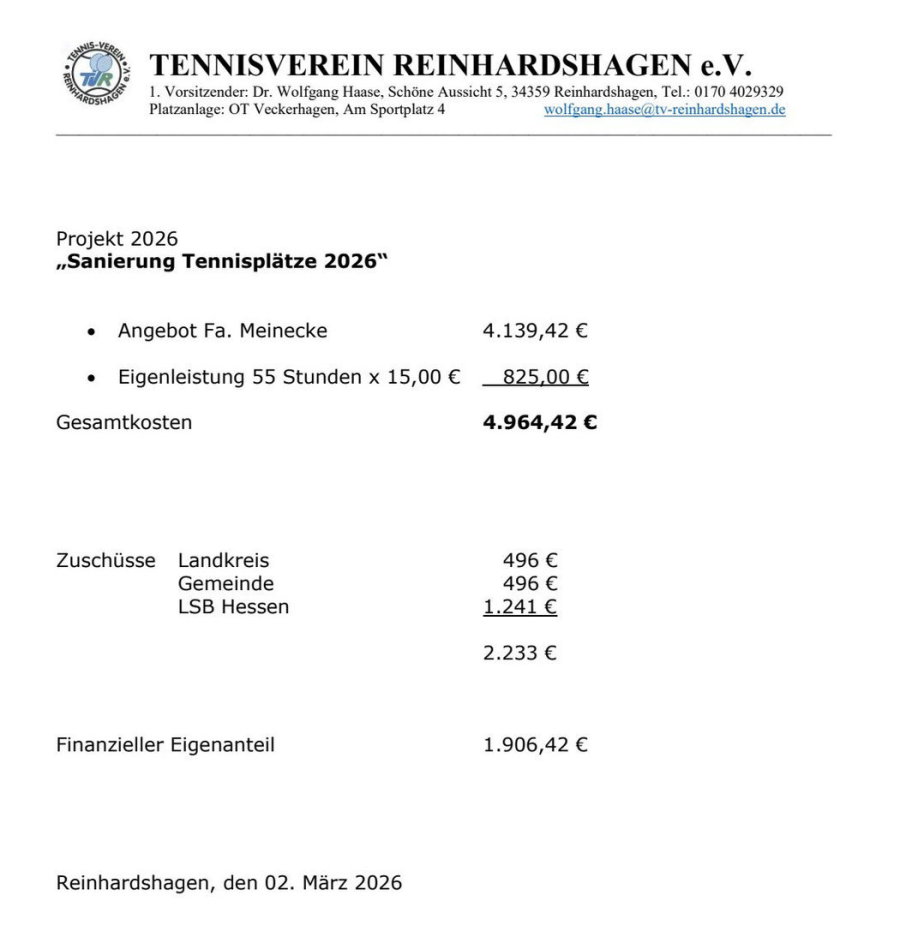Tennisverein Reinhardshagen e.V. Schöne Aussicht 5 34359 Reinhardshagen