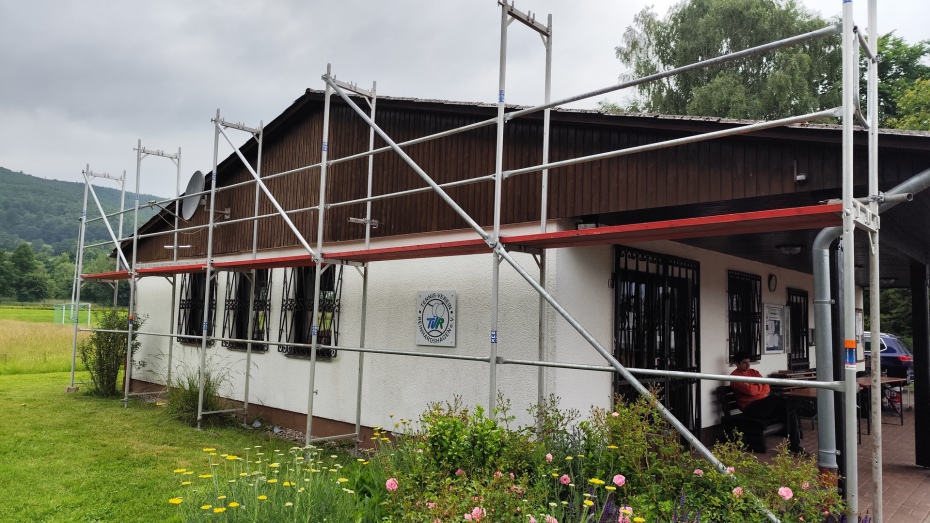 10.06.25: In den letzten Tagen wurde durch Malermeister Wötzel alle Fenster gestrichen. Jetzt begannen die Arbeiten am Südgiebel.