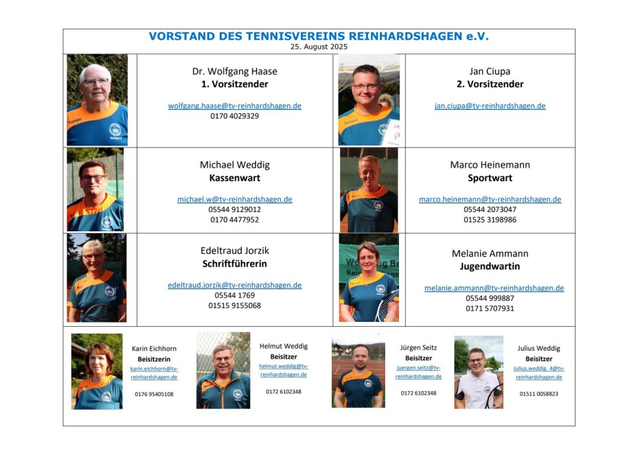 Der Vorstand wurde am 20. Februar 2025 in der Jahreshauptversammlung 2025 einstimmig gewählt.